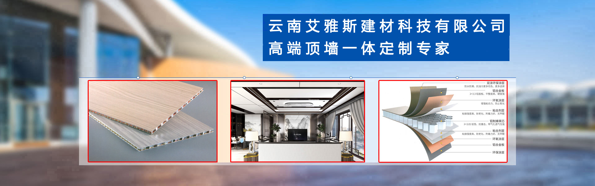 高端頂墻一體定制專家——云南艾雅斯建材科技有限公司,位于昆明經(jīng)開區(qū)小石壩社區(qū)白水塘上村36號,專注于鋁蜂窩大板,配套鋁型材,集成墻板,無主燈,照明系列的設計、生產(chǎn)、銷售、安裝于一體的高端頂墻定制專家,是一家具有多年生產(chǎn)研發(fā)及完整銷售管理經(jīng)驗的公司,艾雅斯鋁蜂窩板全新視覺觀感,高端大氣,風格百變,隨心設計! 云南艾雅斯建材生產(chǎn)的鋁蜂窩板、鋁型材、集成墻板深受廣大消費者所喜愛,具有環(huán)保無醛,防水防潮,隔音隔熱,高強度,抗沖擊,不易變形,堅固牢靠等特點,廣泛應用到各行各業(yè),成為全國各地的加工廠、批發(fā)商一站式的供應商,備受好評。云南艾雅斯建材科技有限公司嚴格執(zhí)行售前、售中、售后,全方位的合作形式,我們堅持以產(chǎn)品質(zhì)量為中心,以客戶需求為理念,為廣大加工廠,批發(fā)商提供優(yōu)質(zhì)的產(chǎn)品與服務。了解更多